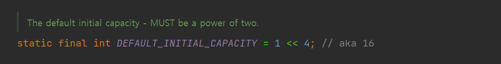 HashMap 내부 구현체에서 아래와 같은 비트연산자 <<를 사용하여 표현하였다.
