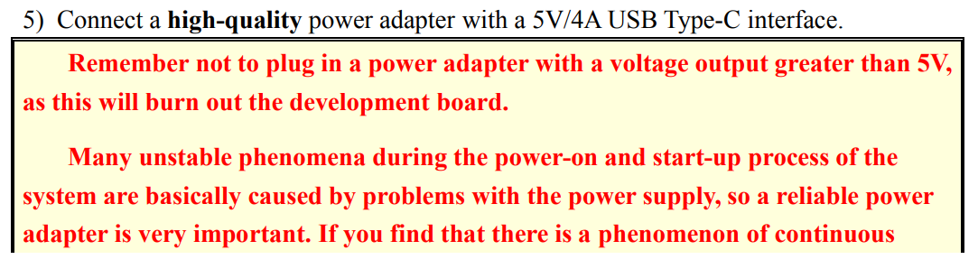 충전기는 5V 4A 이상의 "믿을만한" 충전기(애플, 삼성 수준의) 를 이미 가지고 있다면 오렌지파이 정식 충전기를 구매하지 않아도 된다. 고속 충전기를 사용하더라도 contract에 따른 PD negotiation 이후에 고속 충전이 시작되므로 이론적으로는 문제가 없다. 또한 암페어는 4A 이상으로 높은 충전기를 사용하더라도 이론적으로 문제를 발생시키지 않는다.