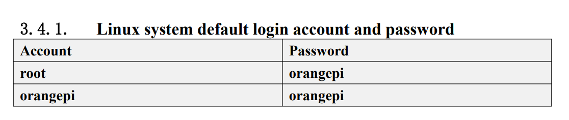 오렌지파이 5는 기본적으로 다음 2개의 계정을 디폴트로 가지고 있다.