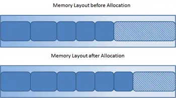 1. 객체 생성이 빨라진다. 모든 객체 하나 하나에 OS를 통한 전역 동기화(global synchronization)를 할 필요가 없어지기 때문이다. 할당 과정이 단순히 메모리 배열의 일부분을 요청하고 메모리의 오프셋 포인터를 앞으로 이동시키기만 하는 것으로 끝난다 (Figure 2.1 참고). 이 다음 할당은 이동된 오프셋을 기준으로 시작해서 요청하는 양만큼 할당되게 된다.